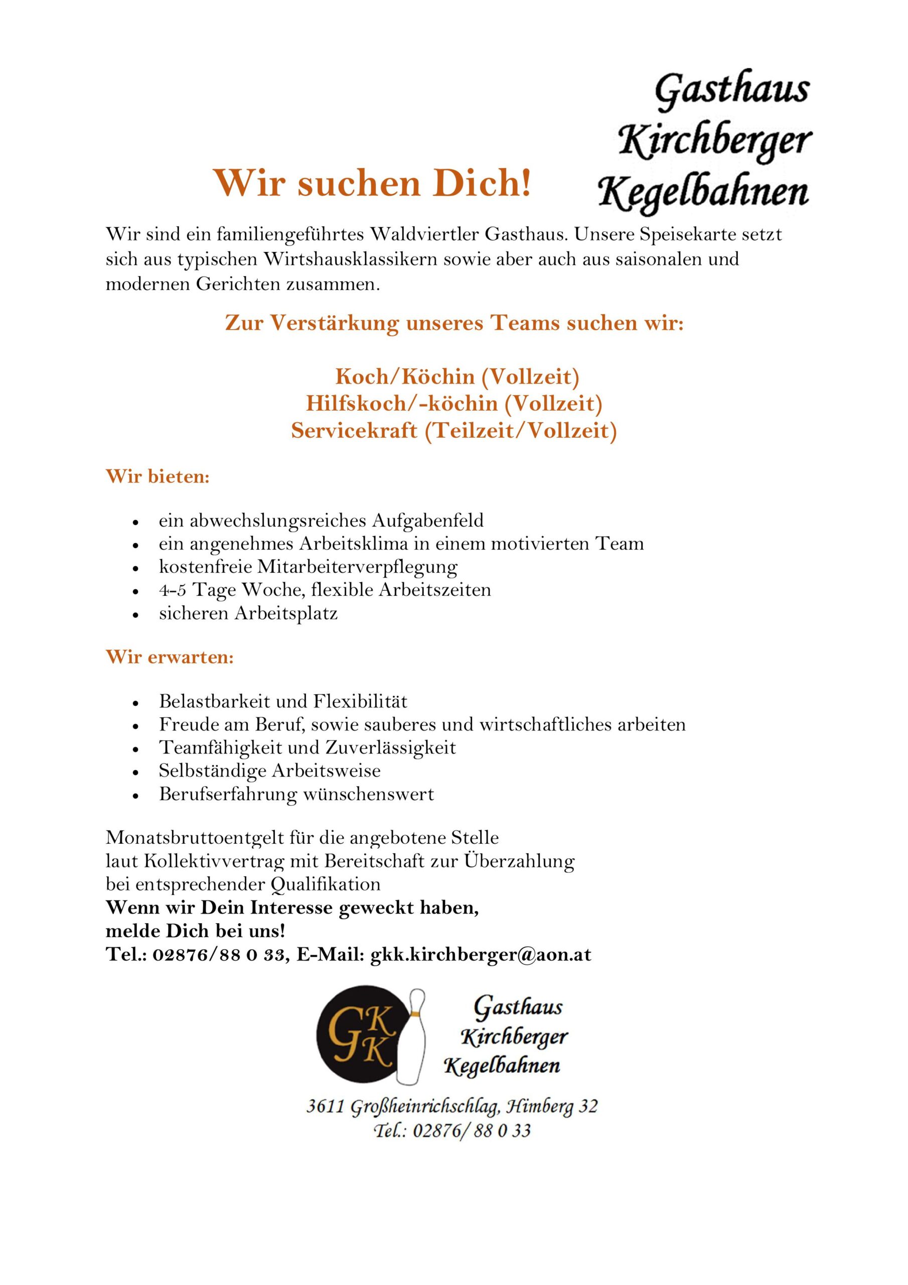 Das Gasthaus Kirchberger & Kegelbahnen in Himberg ist der regionale Treffpunkt für Jung und Alt. Mit traditioneller und gut bürgerlicher Hausmannskost und auch ausgefalleneren und saisonalen Schmankerln findet in unserem Gasthaus jeder etwas, das ihm mundet.