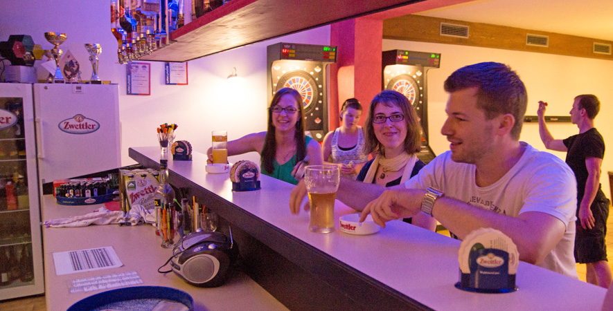 Um bis in den späten Abend zu feiern und für Unterhaltung zu sorgen, bietet sich natürlich unsere Bar mit verschiedenen Unterhaltungsmöglichkeiten (Billard, Dart, Wuzzler) sowie die drei Kegelbahnen perfekt an.